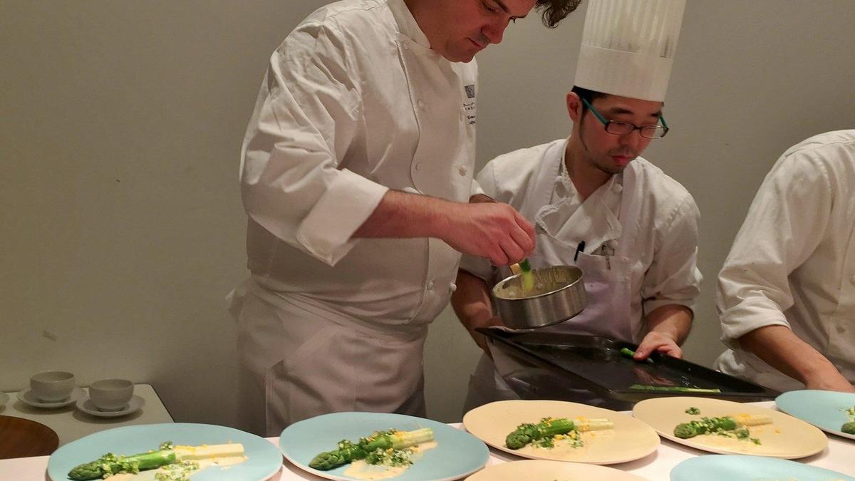 Rassemblés à Maison Première, un restaurant / salon de mariage ouvert en avril 2015, la cinquantaine de convives a pu savourer une cuisine issue de la collaboration du Chef français Armand Arnal (1 étoile Michelin pour son restaurant « La Chassagnette ») et la maison de saké Masumi de Suwa (préfecture de Nagano).