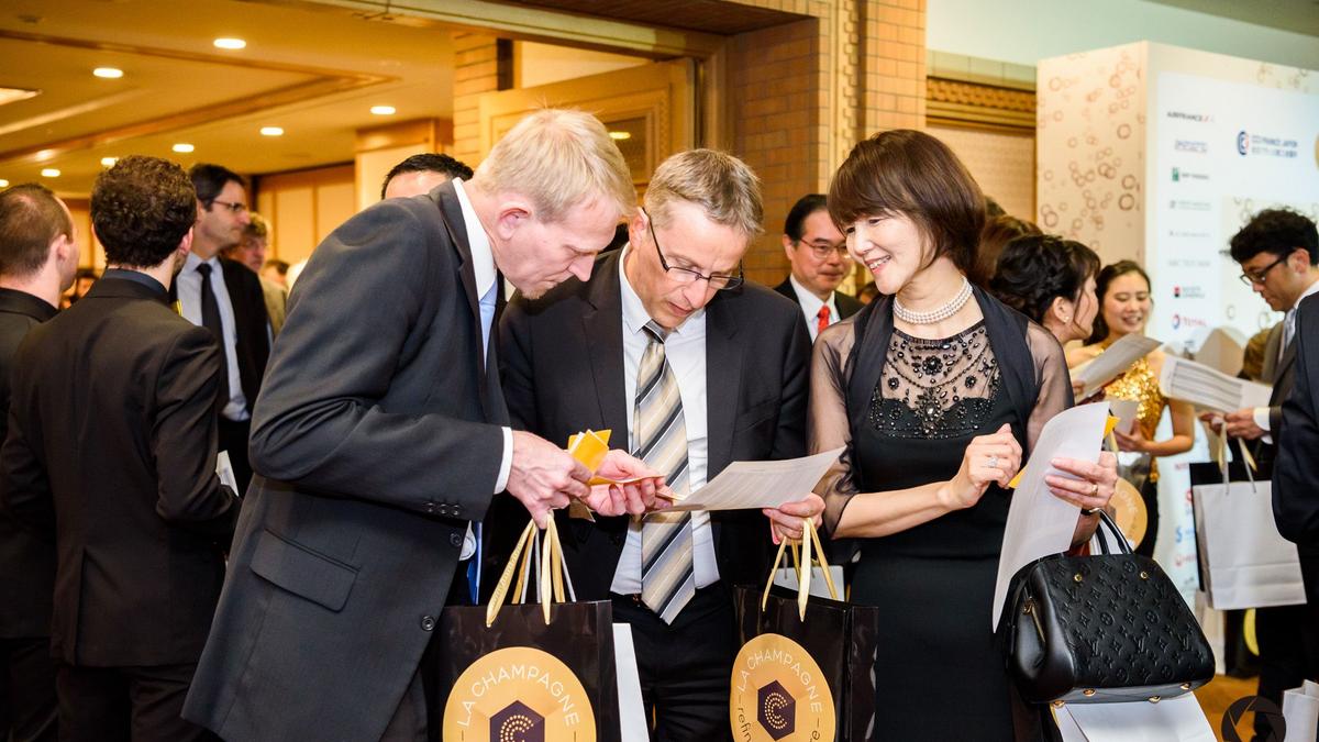 Tous ont aussi pu tester leurs connaissances de la Champagne et de la CCI France Japon lors d’un grand quiz à la suite duquel deux tables gagnantes ont pu remporter par invité une bouteille de champagne Collet. Enfin, ce n’était pas la seule occasion de remporter quelque chose ce soir-là car il était aussi possible de gagner parmi plus de 330 lots lors de la traditionnelle grande tombola. Entre autres étaient proposés un magnifique voyage en France et en Champagne comprenant deux billets aller-retour en classe Affaires Paris-Tokyo offerts par Air France, ou encore une somptueuse montre offerte par Chanel mettant à l’honneur l’esprit de la créatrice de mode la plus connue au monde.