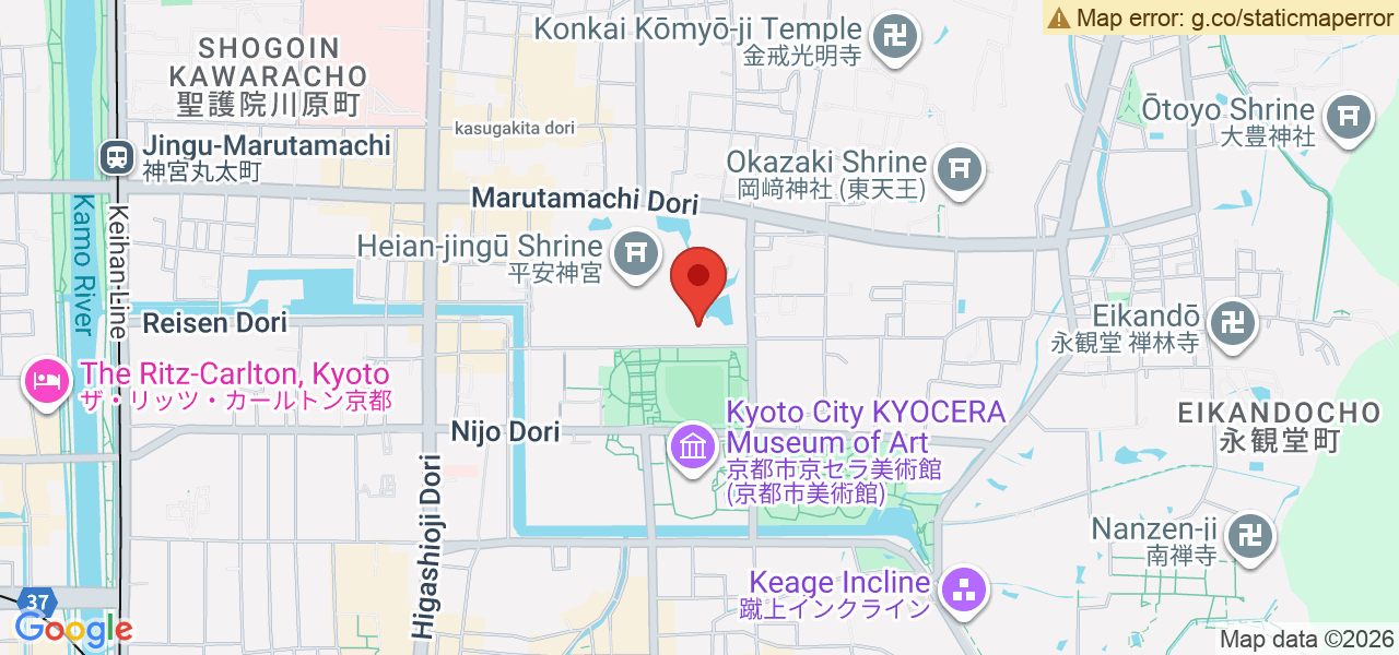 ? 3 minutes walk from “Okazaki Koen / Bijutsukan, Heian Jingu-mae” bus stop (Kyoto City Bus)