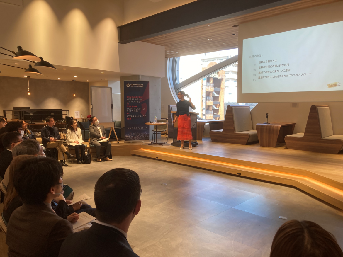 The second seminar was led by Helen IWATA, who, as a professional coach, explained the keys to building trust in the workplace. Drawing on the trust equation and the three main causes of workplace conflict, she guided participants through a hands-on reflection to apply these concepts to their own situations and explore practical conflict resolution approaches.