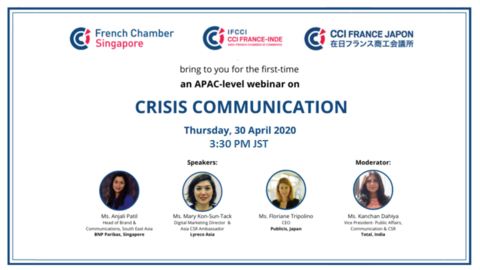 The French Chamber of Commerce & Industry in Japan in collaboration with the Indo-French Chamber of Commerce & Industry and the French Chamber of Commerce in Singapore are jointly organising an APAC- Level Webinar on Crisis Communication or how to communicate during a pandemic situation.
