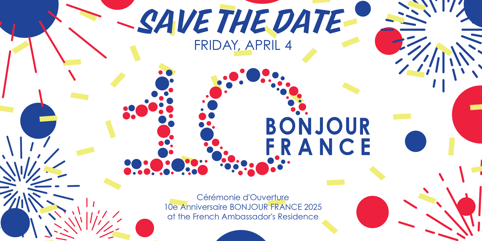 Célébrons ensemble le 10ᵉ Anniversaire de BONJOUR FRANCE avec L'ART DE VIVRE À LA FRANÇAISE à la Résidence de l'Ambassadeur de France!