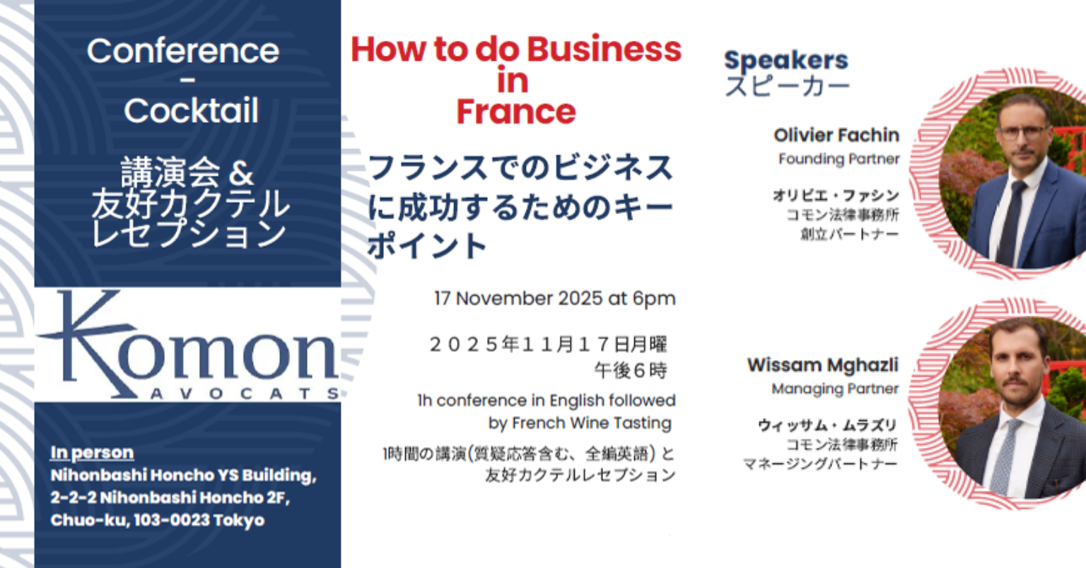The partners of Komon Avocats will share their hands-on experience in the Franco-Japanese business field