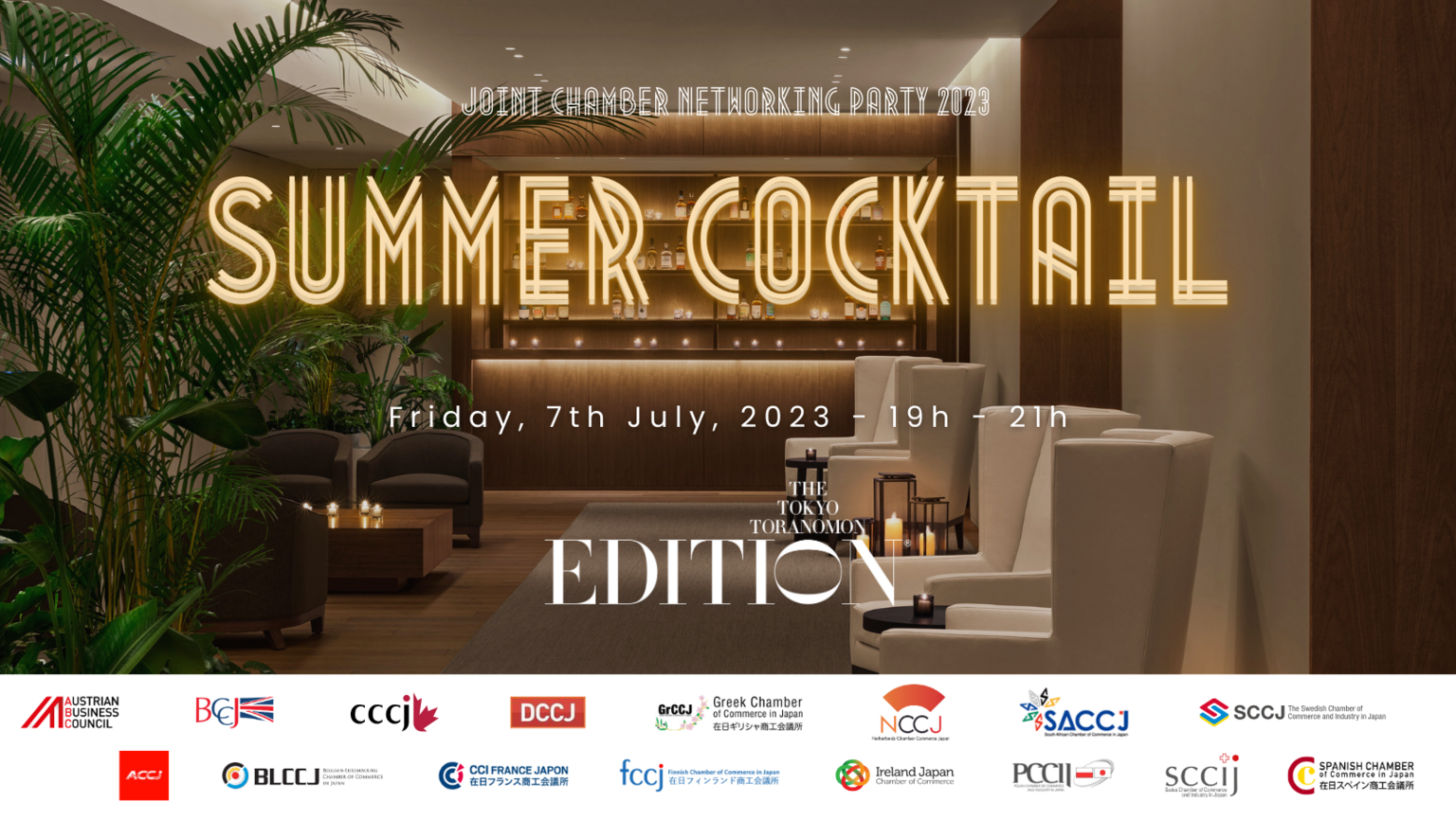 Join us for an exclusive business networking infused with the enchantment of Tanabata. Organized by the Spanish Chamber of Commerce in Japan, in collaboration with 15 international chambers this event will be held at the magnificent Tokyo Edition, Toranomon. The Summer Cocktail is a beautiful opportunity to expand your connections and cultivate fruitful relationships with industry leaders and like-minded professionals from diverse backgrounds.