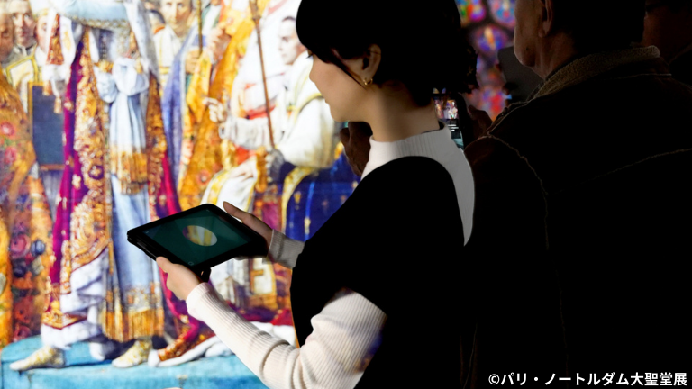 Dans cette exposition innovante, les visiteurs utilisent une tablette appelée HistoPad pour voyager dans le temps et explorer l'histoire de Notre-Dame de Paris, de sa fondation jusqu'à nos jours, à travers la réalité augmentée et d'autres contenus multimédias. Après avoir parcouru de nombreuses grandes villes à travers le monde, l'exposition arrive pour la première fois au Japon, juste à temps pour la réouverture de Notre-Dame de Paris en décembre.
