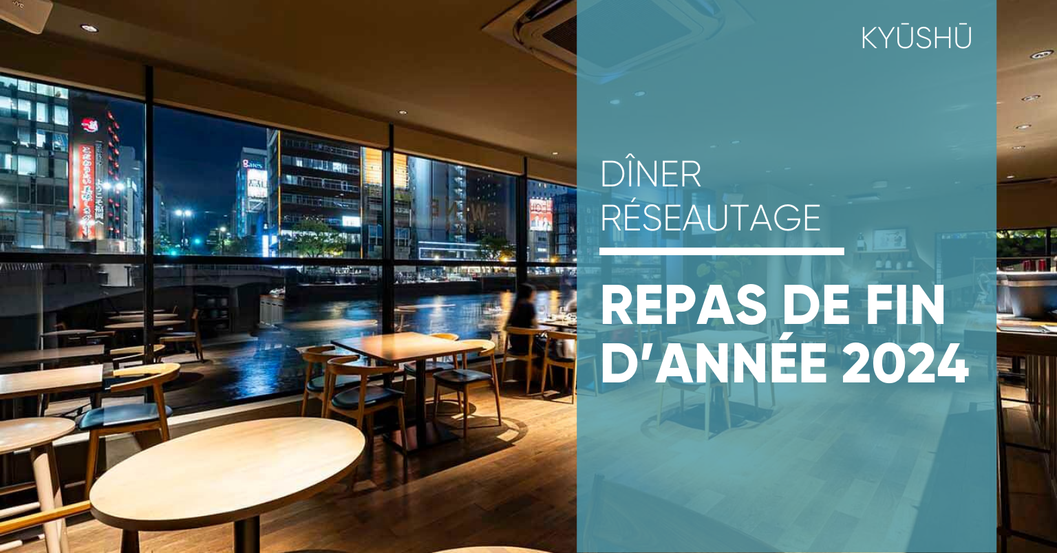 La CCIFJ à Kyushu est ravie de vous inviter à son traditionnel dîner de fin d'année, qui se tiendra dans le cadre chaleureux du restaurant "Au Bord d’Eau Fukuoka". Situé au bord de la rivière Naka, ce lieu est parfait pour une soirée placée sous le signe de la détente et du partage.