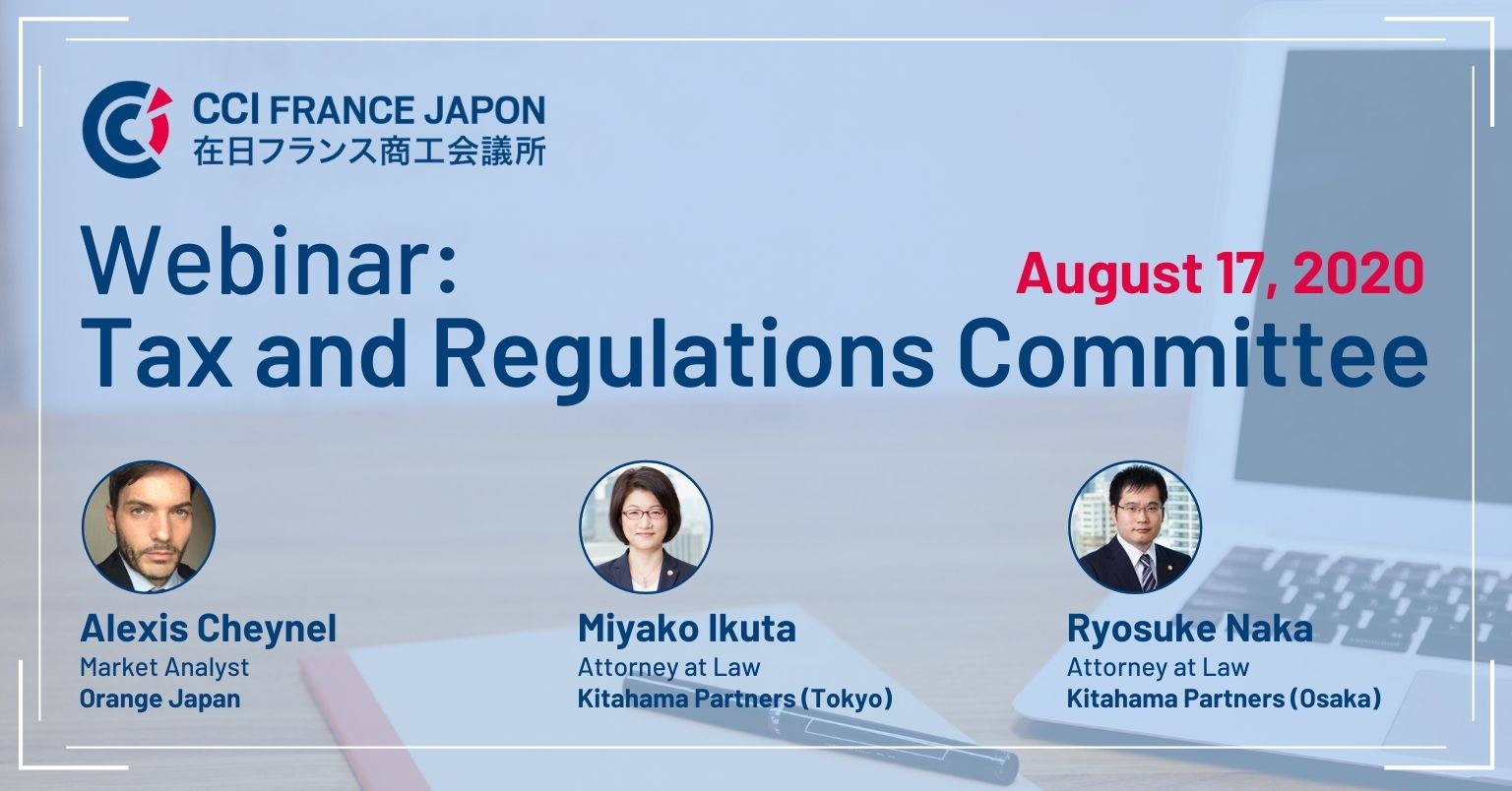 The French Chamber of Commerce and Industry in Japan invites you to its next Tax and RegulationsCommittee event on Monday, August 17, 2020.