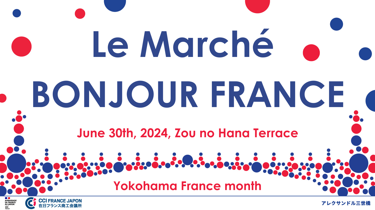 ボンジュール・フランスは、フランス大使館文化部・アンスティチュフランセ 横浜日仏学院主催『横浜フランス月間』に際し、2024年6月30日(日)に象の鼻テラスで「ル・マルシェ・ボンジュール・フランス」を開催致します。