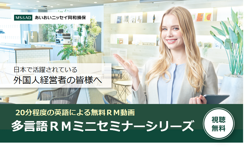 会員企業である「あいおいニッセイ同和損害保険」は、企業からのニーズが高いリスクテーマに関して英語によるミニセミナー動画を作成し、このたび会員企業の皆さまへ無料配信します。