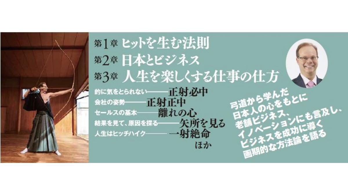 その教えのひとつとしてシュシャン氏は、「的を狙うよりも弓を引く」技術と動作の美しさに集中することが重要であると語っている。西洋のアーチェリーとは異なり、弓道では「正射必中」(正しく射られた矢は、必ず的に当たる)の姿勢と精神を重んじる。ビジネスの世界に置き換えると、チームのエネルギーをマーケティングや製品開発、販売チャネルの開拓に注ぎ、売上や利益といった定量的な目標に「惑わされ」ないという意味になる。こうした目標ももちろん大事であり、ターゲット(標的)も必要であるが、弓を引く動作の価値より優先してはならないと同氏は話す。「売上は達成すべき脅迫的な目的ではなく、正しいマネジメントによって自然にもたらされる結果でなくてはならない」とシュシャン氏は語る。高橋書店より定価1,300円で発売中。英語版の刊行についても現在交渉中である。
