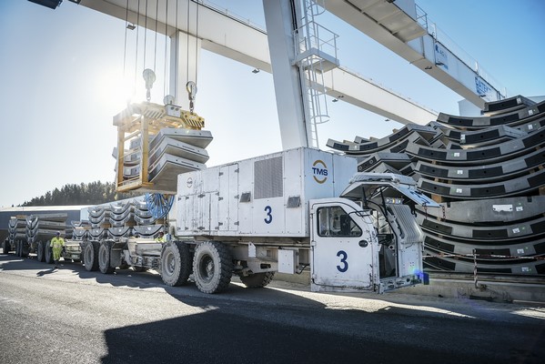 TMSは、地上および地下工事現場の多数の海外プロジェクトに参加している。工事現場の複合性に適応したソリューションで、トンネル、地下鉄、橋、高架橋、高速道路・鉄道構造物などのさまざまな建設プロジェクトに携わり、フランスの建設大手ブイグ社やエファージュ社、ヴァンシ社などをはじめとする建築・公共事業分野の大手のグローバル企業にサービスを提供している。TMSのソリューションは、あらゆるタイプの積荷(最大200トンまで)、設備、資材、作業員の運搬が可能で、時間の節約ができ経済的、かつ安全と安心を保証するものだ。TMSの先端技術により、たとえば、狭い工事現場や斜度20%の坂道がある現場でも、MSVの経路をしっかりコントロールしながら進入することができる。