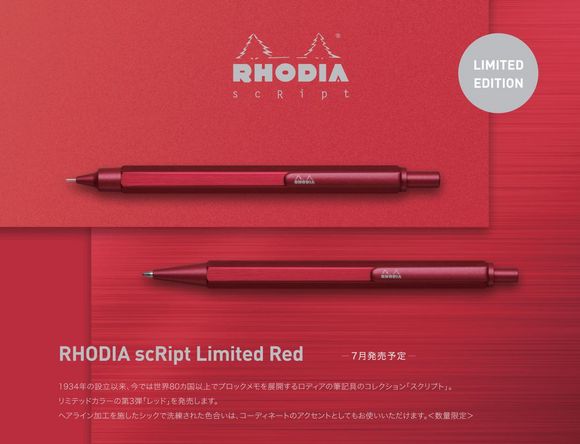 筆記具コレクション「スクリプト」では、限定色の第3弾「レッド」(数量限定)が発売されます!ミニマルデザインで高級感ある色合いは、コーディネートのアクセントにもなります。