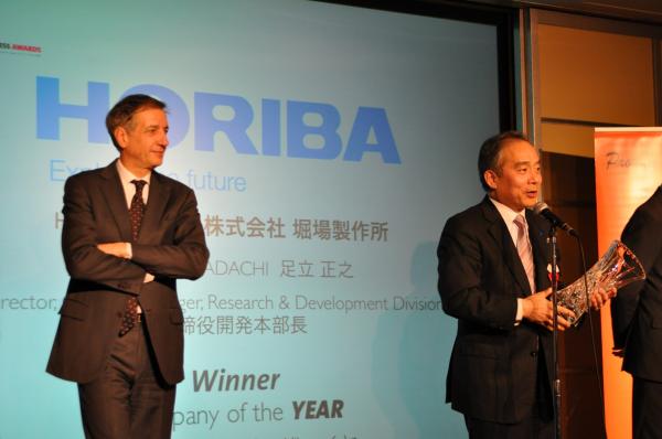 在日フランス商工会議所の会員企業の昨年の優れた活動に与えられる「カンパニー・オブ・ザ・イヤー」は、株式会社 堀場製作所が受賞し、ティエリー・ダナ駐日フランス大使より、同社取締役開発本部長、足立正之氏にトロフィーが手渡された。