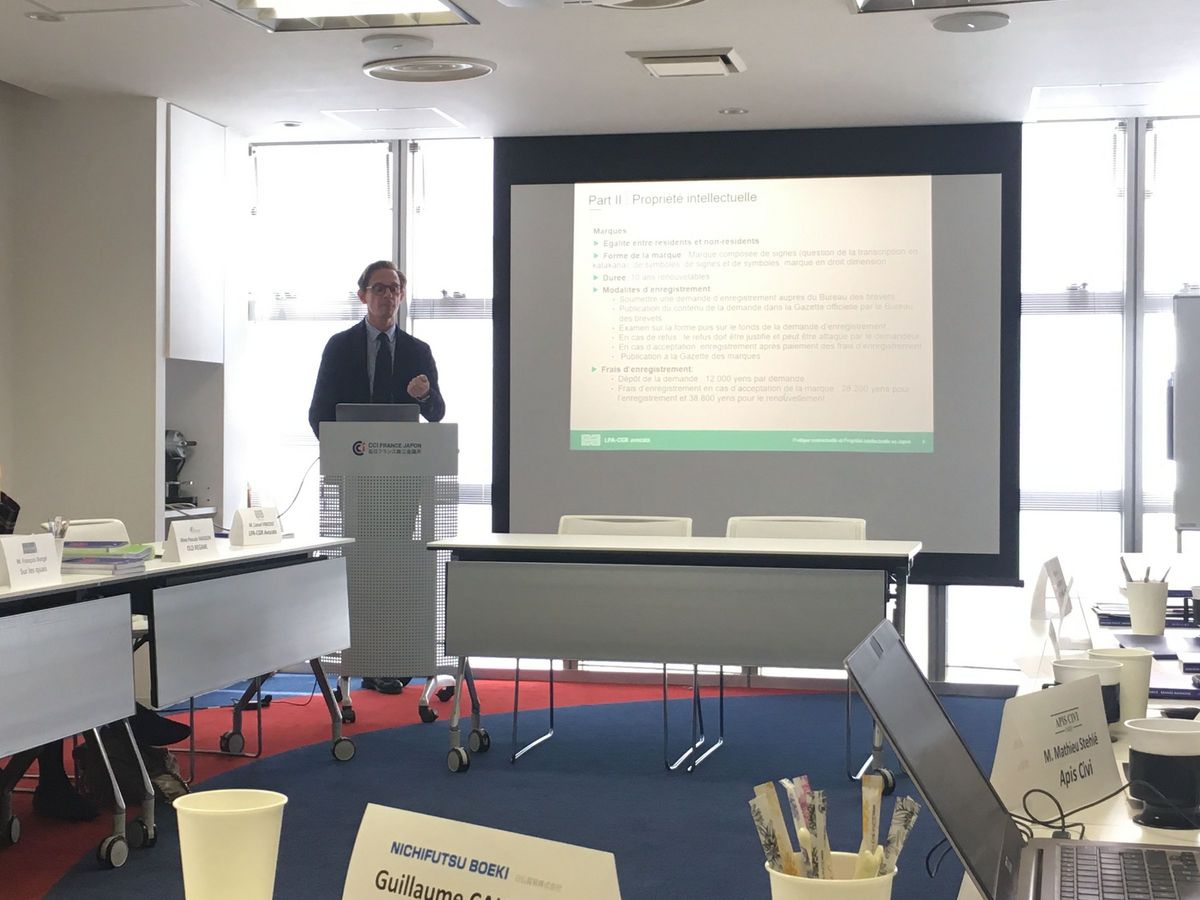 参加者達は、初日に専門家をスピーカーに迎えた日本市場に関するセミナーに参加し、商談の準備を整えた。日本市場の構造や最新トレンドから、日本の契約法及び知的財産権に関する法律、銀行業務を取り巻く環境、日本の消費材市場や商文化まで多岐にわたるテーマについて専門家がプレゼンを行った。本セミナーには、在日フランス商工会議所商務部のエデュアール・カーズと渡辺惟をはじめ、ルフェーブル・ペルティエ・エ・アソシエ外国法事務弁護士法事務所(LPA)のリオネル・ヴァンセント氏、クレディ・アグリコルのインターナショナルデスクジャパン代表の齊木 裕香氏、日仏貿易株式会社の社長ギヨーム・カルー氏が参加し、それぞれ専門的立場から知見を述べ、参加者にアドバイスを行った。