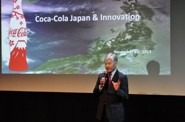 カリル・ヨウンス氏は、赤と白のロゴで知られるコカ・コーラブランドの日本での成功の秘訣について講演を行った。ヨウンス氏は、当初薬局のソーダファウンテン(飲料水などを供給するための簡易な装置)で医療用飲み物として販売されていたコーラの幻想的な伝説を語った。1957年日本に上陸したコカ・コーラは、自動販売機の普及とそのブランド・ポートフォリオの拡大によって大きな成功を収めた。他の国とは異なり、日本では売上高の大半を炭酸飲料以外が占める。同社で成功している緑茶(綾鷹)や、コーヒー(ジョージア)、スポーツドリンク(アクエリアス)、フレーバー水(い・ろ・は・す)の4つのブランド(売上高200億ドル以上)は、日本で開発されたものだ。
