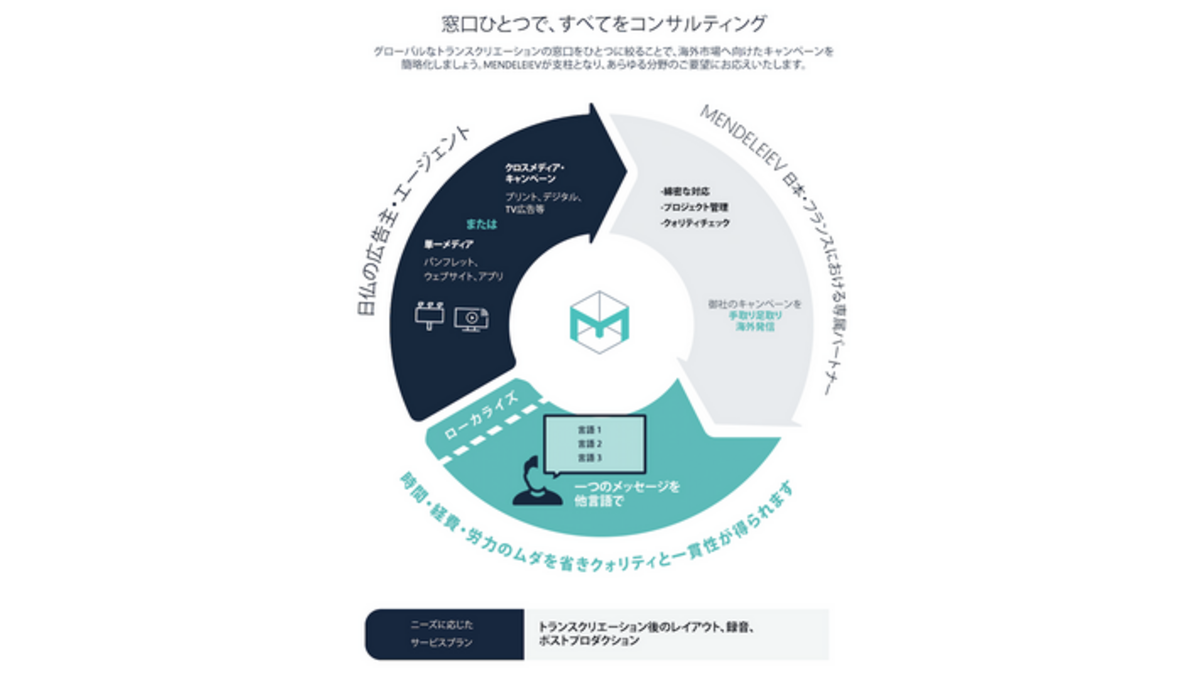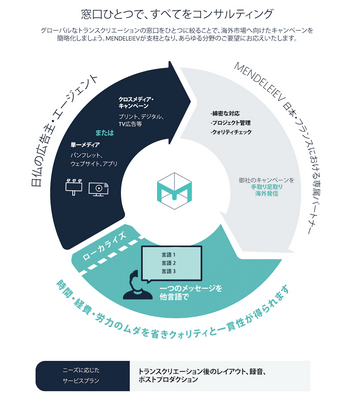 戦略、ブランディング、デジタルコミュニケーションのサービスを提供するメンデレーエフ社は、クライアント向けに新たにトランスクリエーションサービスを開始する。トランスクリエーションとは、従来の翻訳とは異なり、コミュニケーション媒体やコンテンツを、他の言語や、とりわけ他の文化に対応させるクリエイティブなプロセスのことで、伝えたいメッセージの意味を失うことなく、効果的にコンテンツの意図を維持することができる。