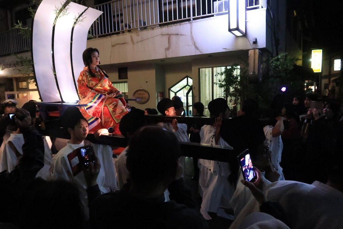 11月3日、4日には、竹ぼんぼりで有名な「うすき竹宵」が開催され、2日間の祭り期間中には地元から見物人10万人が来場した。「外国人観光客の姿はわずかで、それがこの祭りに本物の雰囲気を与えていた。」とあるモニターツアー参加者は述べた。一丸となって通りやレストラン、商店や神社仏閣などに、彫刻を施した2万もの竹ぼんぼりを飾られる。夜の散歩は、般若姫行列と同様にまたとないスペクタクルである。3人の美しい姫君が、それぞれ白装束の男性が担ぐ輿に乗せられ八坂神社まで運ばれる。