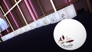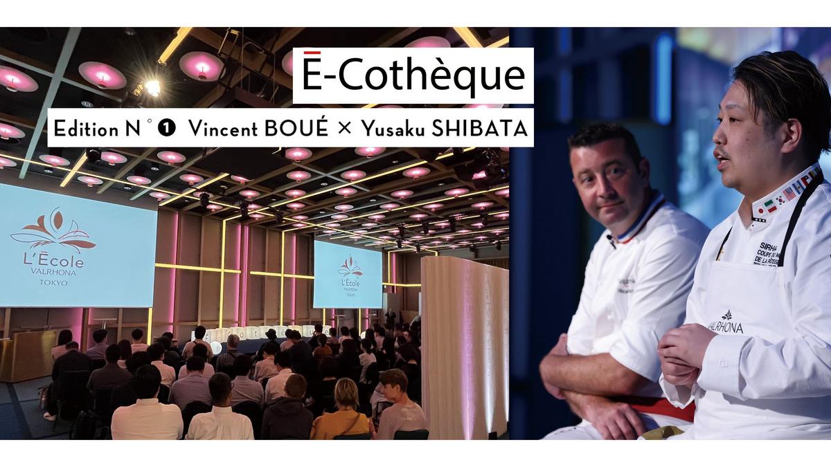 『É-Cothèque(エコテック)』は、ヴァローナの企業理念を象徴する、ショコラ専門技術校「École Valrhona(エコール・ヴァローナ)」の東京校でエグゼクティブ・シェフを務めるファブリス・ダヴィドゥ氏の発想から生まれました。École(エコール)は学校を意味し、その頭文字「É」に、知識の伝承を可能にする図書館(Bibliothèque/ビブリオテック)の音と役割を重ねています。さらに、エデュケーション(Éducation)、エコノミー(Économie)、エコロジー(Écologie)の「É」を取り入れ、パティスリーの世界を取り巻く要素を集約させることで、『É-Cothèque(エコテック)』が誕生しました。