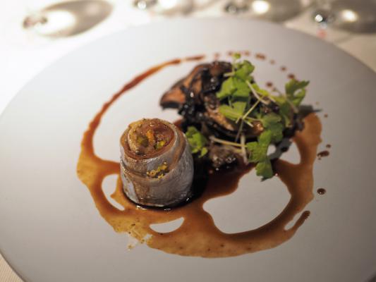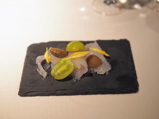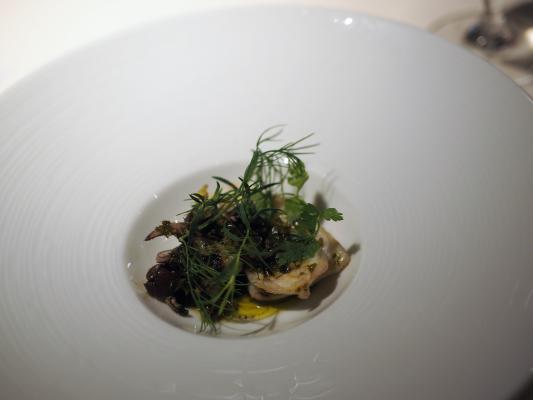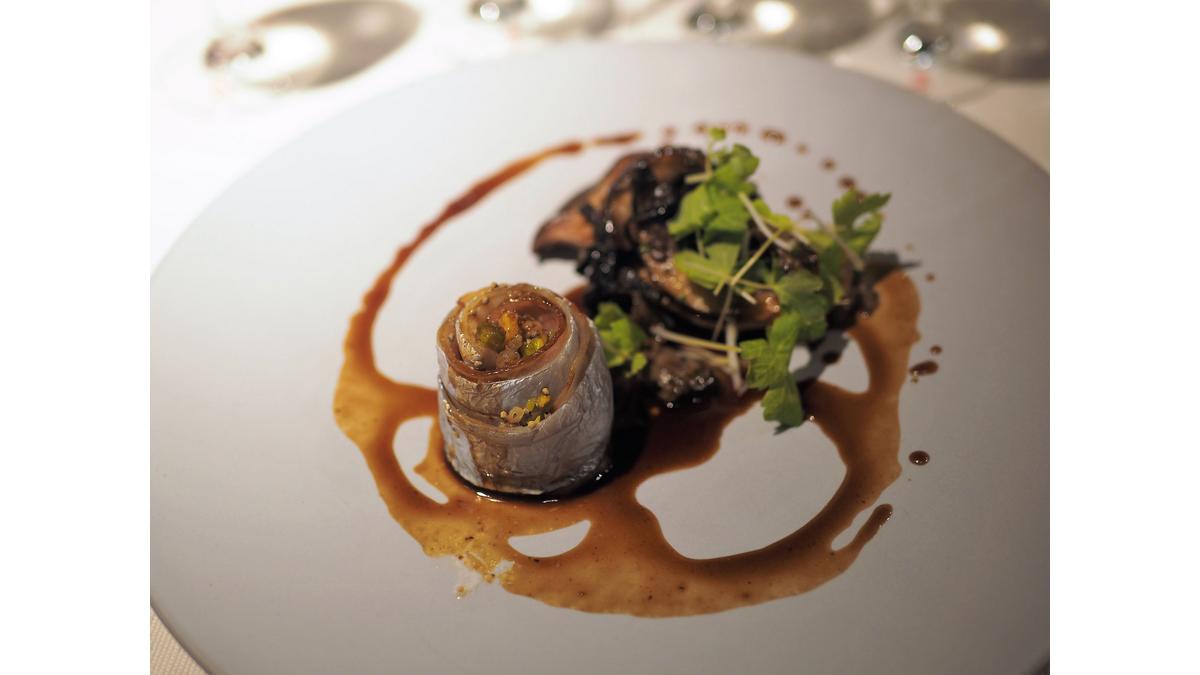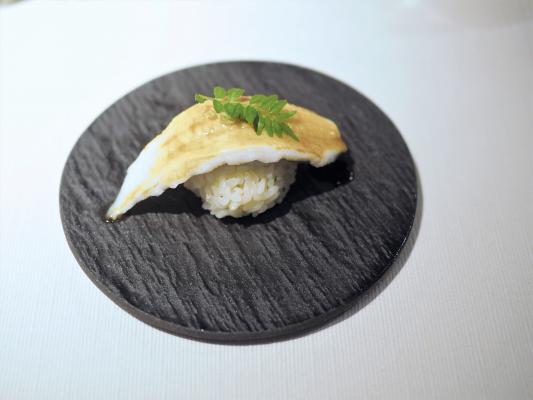 「よあかし食堂」は、明石産の新鮮な海産物を首都圏の料理関係者に紹介するために始まったイベントで今回で2回目の開催。外国人シェフとのコラボレーションは初めてで、フランス料理と明石の魚のマリアージュをコンセプトにコルビシェフが、特別メニューを披露した。「明石産タコのポシェ 大葉とウオッシュチーズ」や「明石産ハリイカのソテー」、「明石真鯛の昆布締め」、「明石太刀魚のポワレ」など8皿で8魚種が提供された。今回のイベントでは明石にある茨木酒造の地酒が振舞われたが、コルビシェフが事前にサンプルの中から試飲し各皿にあう8種を選定、1皿ごとに1酒が提供された。コルビ氏は各料理を参加者に紹介するためキッチンから登場し、料理の具材とマリアージュのコンセプトを解説した。