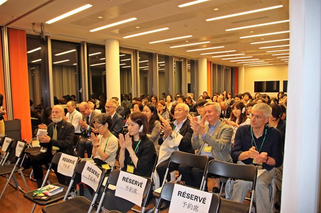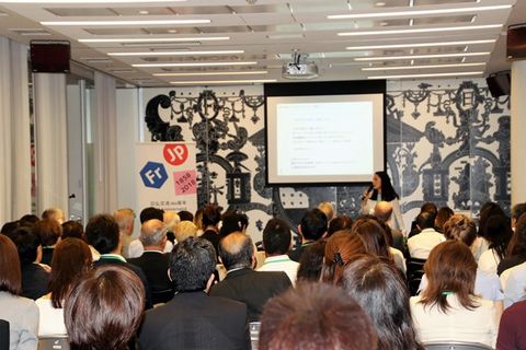 フランスの事例が紹介されたと、増原裕子氏より日本の事例が紹介された。女性が抱える問題についてはよく話題になるが、LGBTの権利が話題に上るようになったのは政府が「ダイバーシティ2.0」を打ち出してからである。国連の持続的発展の目標や、差別反対のオリンピック憲章など、世界の趨勢を早く追随することが日本にとって必要である。「Work with Pride」というラベルが作られ、2017年には100社を超える企業がこの認証を受けた。トリッポン氏と同様、増原氏も職場における安心をLGBTにもたらすことを強調した。日本では13人に1人がLGBTであると推測され、その80%がカミング・アウトしておらず、職場における業務に差し障る、精神的な苦痛を抱えながらLGBTであることを隠している。異性愛者でLGBTに理解を示している人々は、理解者であることを表明しなければならない。そのために「LGBT Ally」というステッカーを増原氏が大衆に配った。そのステッカーはKDDI、JAL、など多くの企業のためにカスタマイズされた。