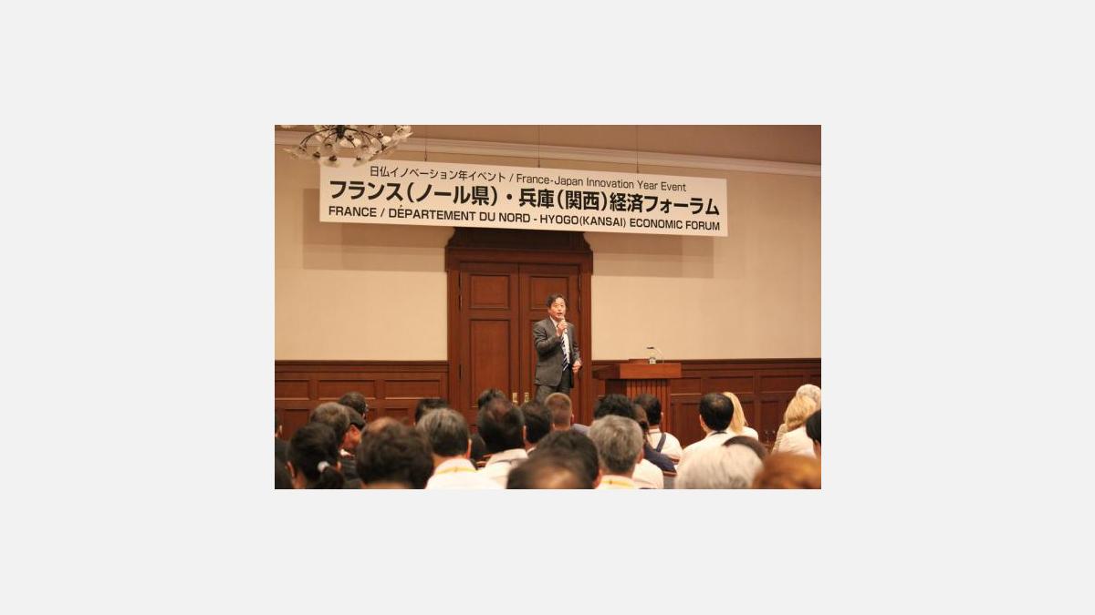 フォーラムの冒頭で、在日フランス商工会議所の信元久隆第一副会頭が、日仏経済交流に大きな関心を持つ大勢の来場者に向け感謝の意を述べると共に、地元を代表して井戸敏三兵庫県知事が歓迎の意を表した。 今回、このフォーラムのためにフランス・ノール県から、ノール県訪問団代表、ノール商工会議所会頭、ノール・フランス・インベスト副代表のリュック・ドゥブレ氏を団長とするノール商工会議所、経済界の代表団が来日し、かねてから様々な分野で交流のある兵庫県(神戸市)で開催したこのフォーラムに参加した。