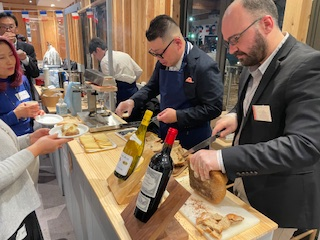 このパーティーでは、パートナーであり新会員となったMOF(MOF Museum Nagoya)様による「ラクレット」のブースも登場し、パリから空輸されたチーズを味わって頂きました。また、ソムリエールの細川聖香様には、参加者からのワインに関する質問に合わせてアドバイスを頂戴しました。