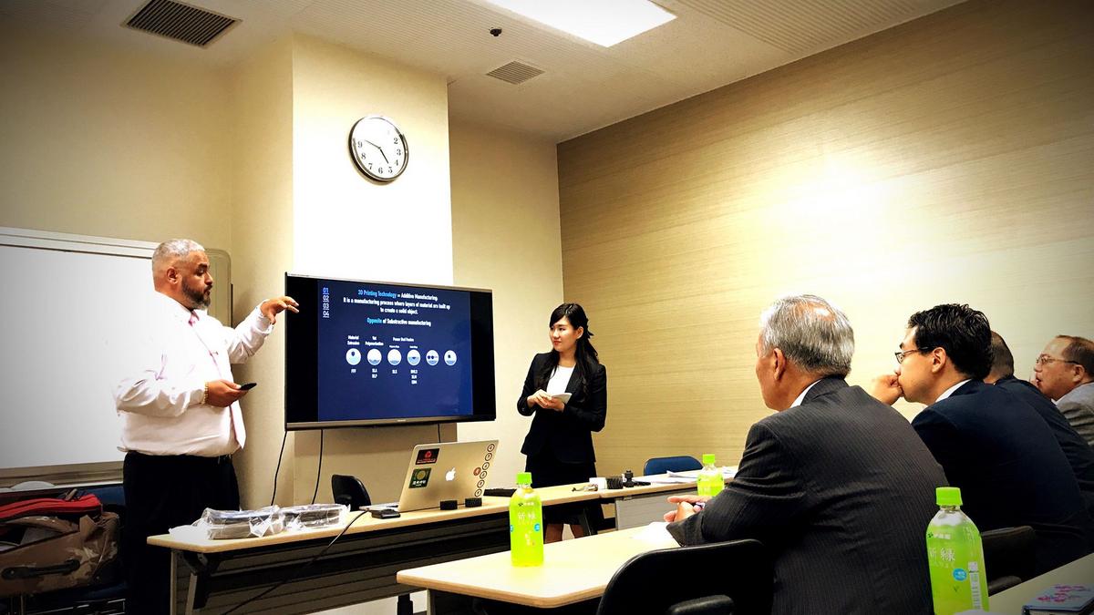 2019年5月24日、在日フランス商工会議所関西デスクのアンバサダー林誠一郎氏が京都で会合を開き、関西会員で国際日本美術歴史文化研究保存協会(NRHK)の創設者ジルダス・シドブル氏が工業部門における3D印刷の応用分野とその多くの利点をKAIN委員会の会員に紹介した。