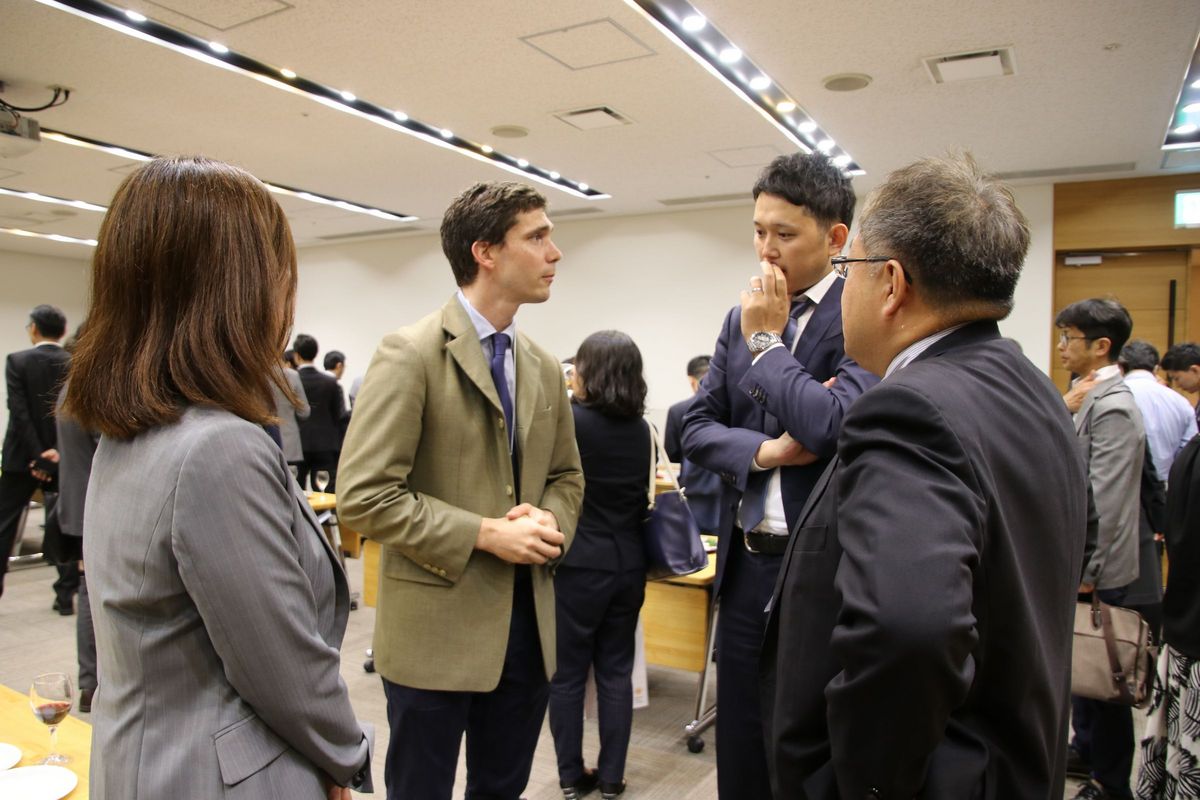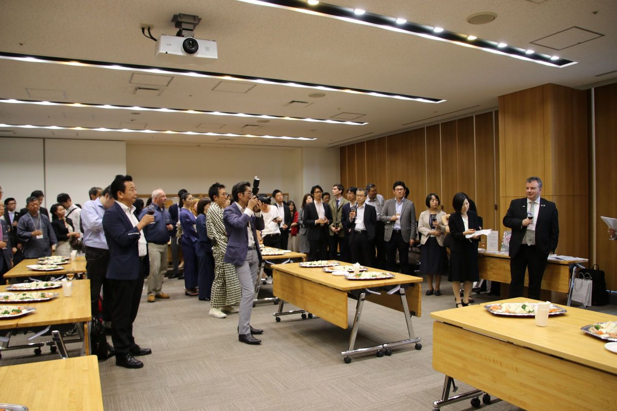 セミナー終了後、プレゼンテーションを行った企業と地元企業間のネットワーキングを目的とした交流会が開催された。交流会会場では、日本エア・リキード株式会社、有限会社チョコレートショップ、株式会社山口油屋福太郎の他、日仏の企業8社のPRコーナーが設けられた。