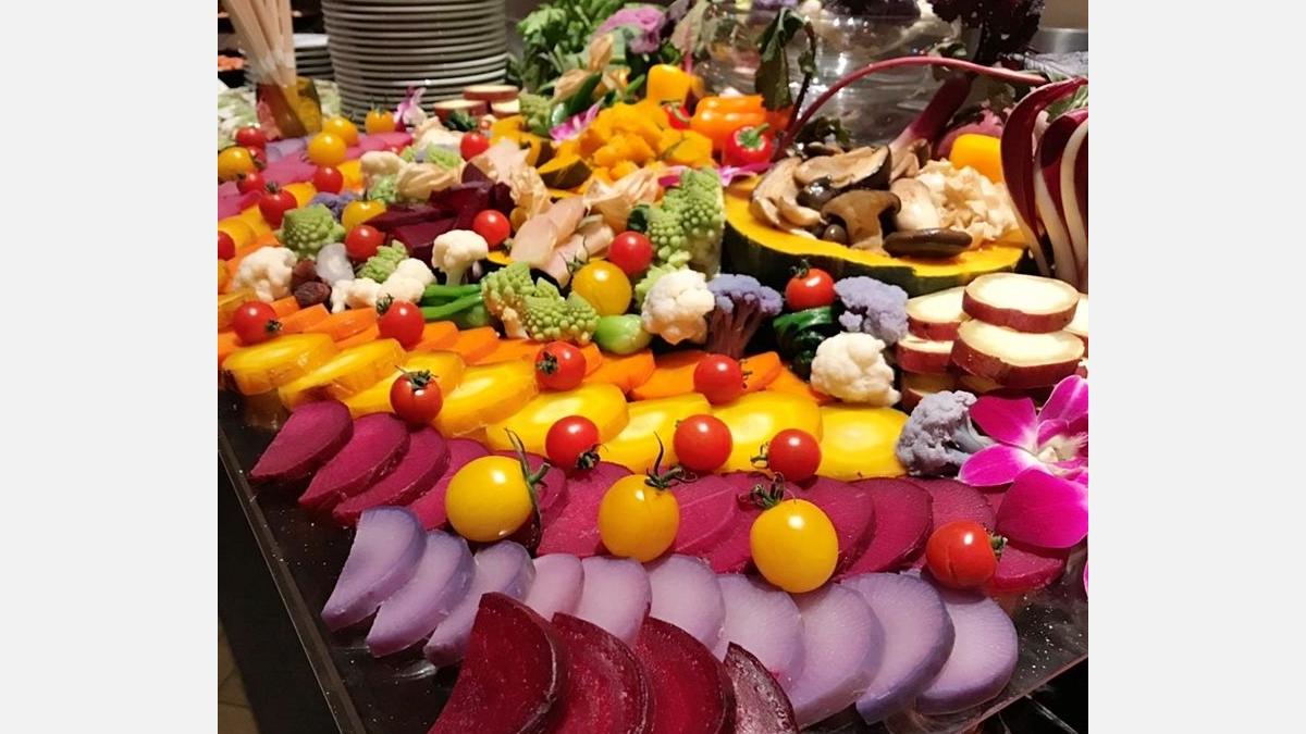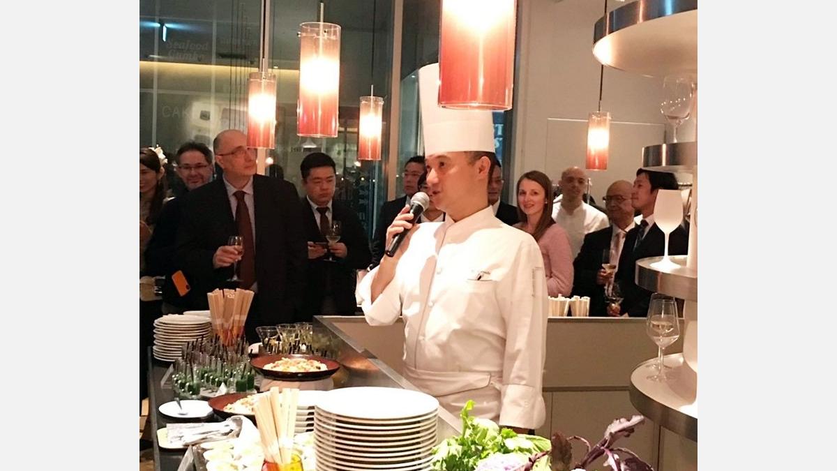 新年会の冒頭で、オーナーシェフの唐渡泰氏から、味わい深く、色彩豊かなスペシャルビュッフェについてご紹介いただいた。フォアグラ、色とりどりの新鮮な野菜、ワインやチョコレートフォンデュなど、様々な料理が新年会に華を添えた。