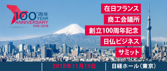 2018年11月19日、日経ホール(東京)にて、100周年記念プロジェクトを締めくくるイベント「日仏ビジネスサミット」を開催致します。