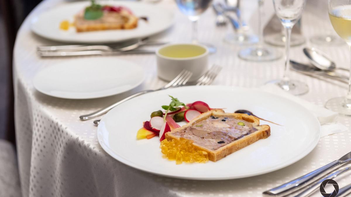パーティーの前半では、フレンチF&Bジャパンにて⻝材事業ディレクターを務めるベルナール・アンクティル様によるスペシャルメニューが用意されました。参加者は一夜限りの特別なディナーとワインのマリアージュを楽しみました。