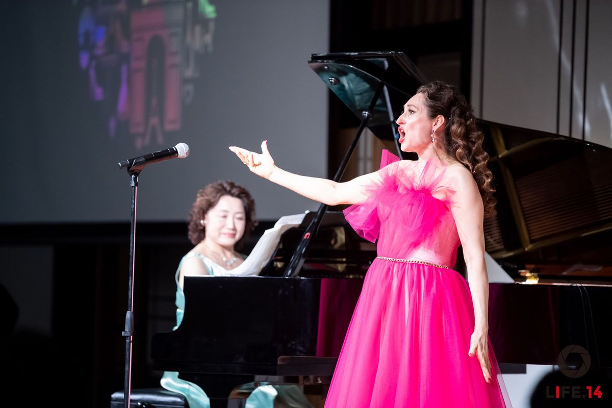 ディナーの次は、ソプラノ歌手のオクサーナ・ステパニュック様とピアニストの比留間千里様コンサートが行われました。会場はフランスらしい雰囲気に包まれ、観客は大いに魅了されました。