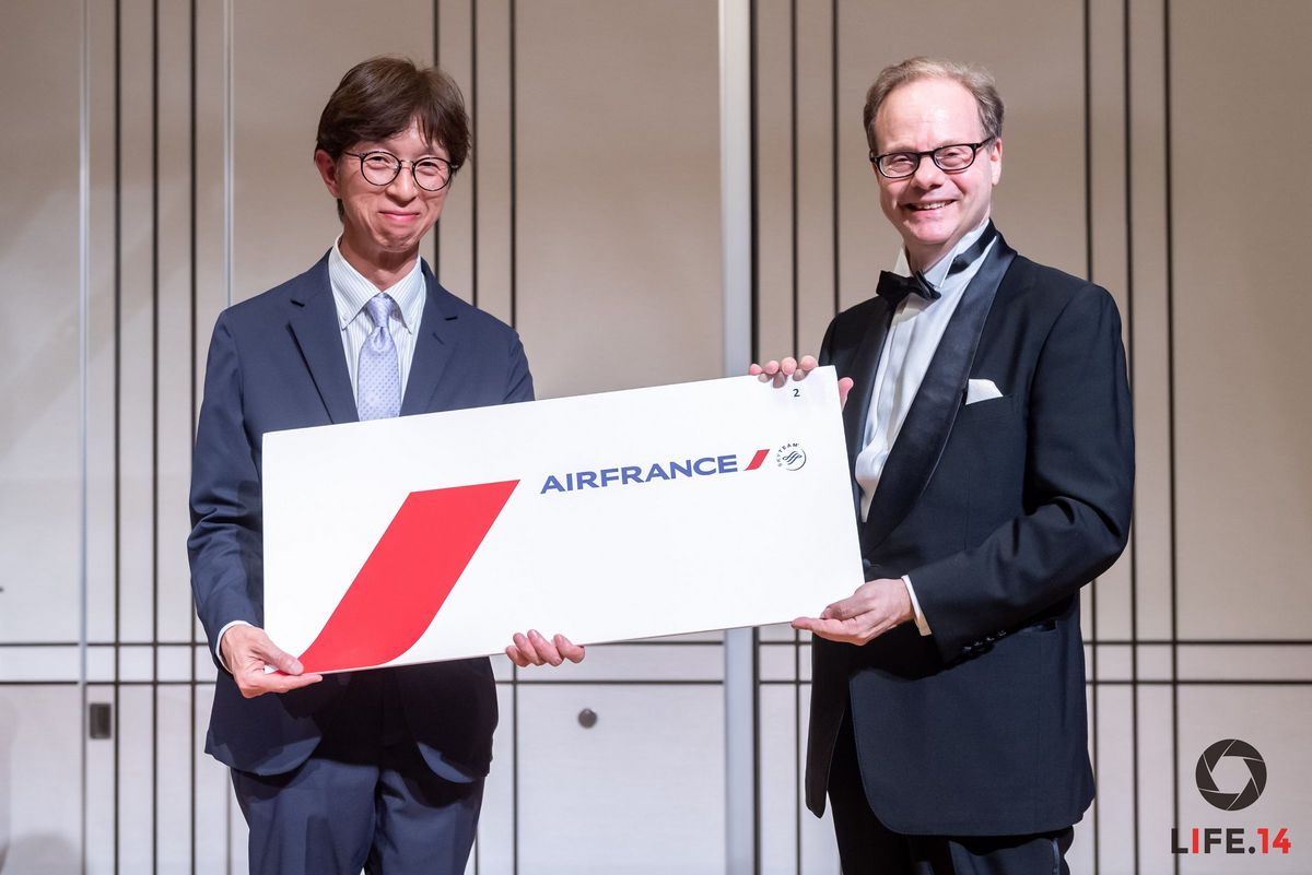 パーティーの後半に開催されたガラ・パーティー恒例の大抽選会では、エールフランス往復航空券、フランスの高級ブランドのバッグや化粧品、ワイン、お菓子等、豪華賞品満載の抽選発表が行われました。