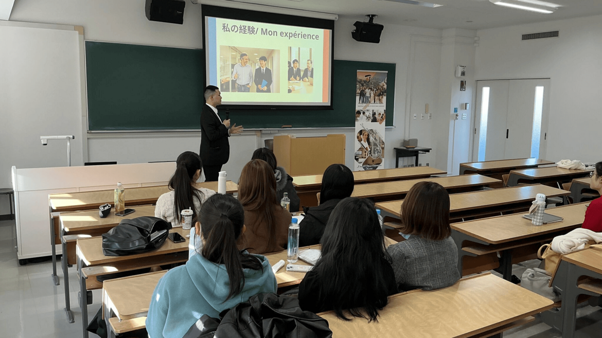 フランス式の長期インターンシップ(数ヶ月)の文化は、日本では非常に珍しいものであり、その結果、外国人学生向けの企業インターンシップの機会はほとんどありません。この問題については過去に、専用のセミナーで既に議論しました。J IMAGINEは、フランス人学生への支援に加え、この問題を逆の方向からも取り組んでいます。大学において、フランス式インターンシップのメリットを日本人学生に理解してもらい、自ら体験してもらうことを提案しているのです。長期の没入型インターンシップの普及に向けたこの長期的な取り組みが、日本社会の意識改革につながることを願っています。