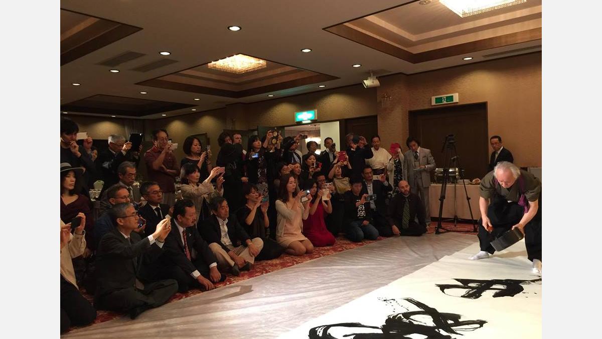 竹本大亀氏は参加者に、自身の作品の歴史を語り、創作プロセスについて説明した。そして、「愛」という漢字を旧字体と新字体で書くパフォーマンスを披露し、参加者を魅了した。伝統とモダンを融合させたパフォーマンスを体験し、情熱的で才能あふれる芸術家の世界へと旅するユニークなひとときを味わった。