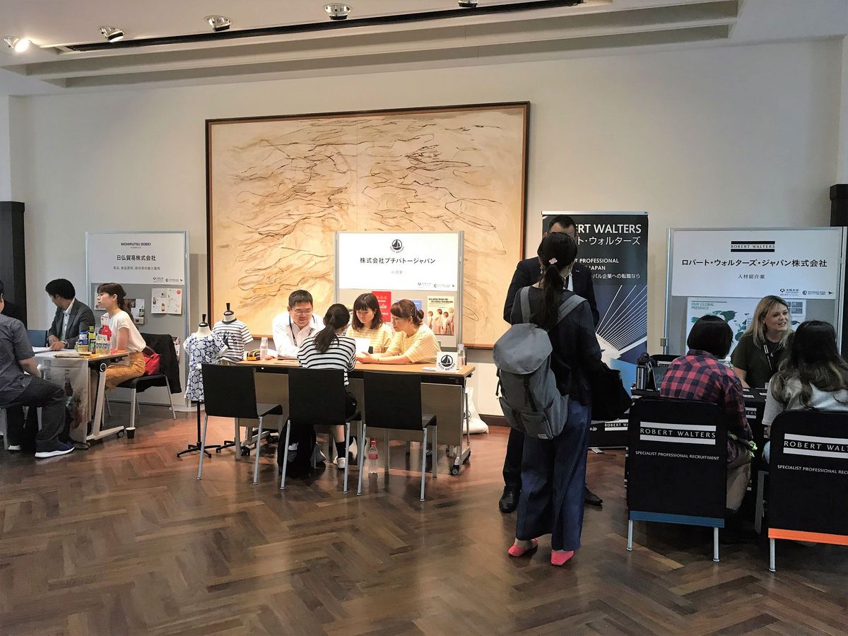 企業の人材リクルートを支援する在日フランス商工会議所人材開発部は2018年6月13日、大阪大学キャリアセンターと共催で第1回「関西雇用フォーラム」を開催した。フランスおよびその他外資系企業11社が、才能豊かな未来の人材と直接交流できる貴重なイベントとして参加した。大阪大学と地域の大学からおよそ80人の学生が来場し、企業の活動やニーズに関するリクルート情報を企業と直接話して収集した。各企業はインフォメーションスタンドと15分間のプレゼンで、日本の若者にあまり知られていない企業名をPRし、インターナショナルな企業で働くことの違い、メリットについて説明した。人材市場では、完全雇用に近づき失業率わずか2.4% という状況の中、英語を話せる能力ある人材の確保が益々難しくなってきていると言われている。今回のフォーラムは企業にとって、ポテンシャルある若手を発掘し、企業への関心を惹きつける機会であった。
