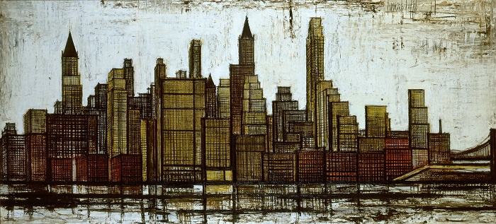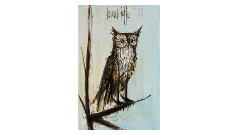 記事下部写真:《ニューヨーク:マンハッタン》1958年 ベルナール・ビュフェ /《小さいミミズク》1963年 ベルナール・ビュフェ