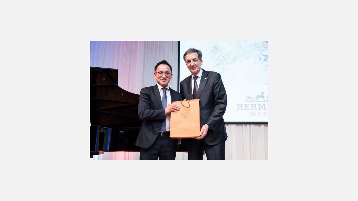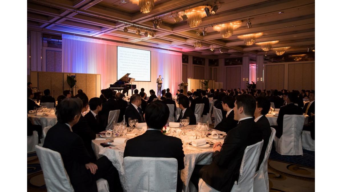 在日フランス商工会議所は2016年5月18日、ホテルニューオータニ博多にて「ガラ・パーティー福岡2016」を開催した。同日、福岡市内で行われた「フランス・福岡(九州)経済フォーラム」に続いて開催された2016年ガラ・パーティー福岡のテーマは「美しきボルドー!」。フランス・南西部に位置し、ワインで有名な国際都市で、福岡市と姉妹都市関係にあるボルドー市の魅力を参加者に伝えるため、ボルドーから、ステファン・デロー副市長(観光プロモーション担当)とファビアン・ロベール副市長(文化関係担当)を代表とするボルドー市使節団のメンバーには、ボキューズ・ドール受賞、M.O.F.(フランス国家最優秀職人賞)受賞シェフであり、ミシュランの星を獲得しているレストラン「リマジネール」のフランソワ・アダムスキ シェフと、ボルドー地方音楽院首席ピアニストのロドルフ・ロスピエ氏らの若きアーティストを含む、6名がこの日のために来日した。
