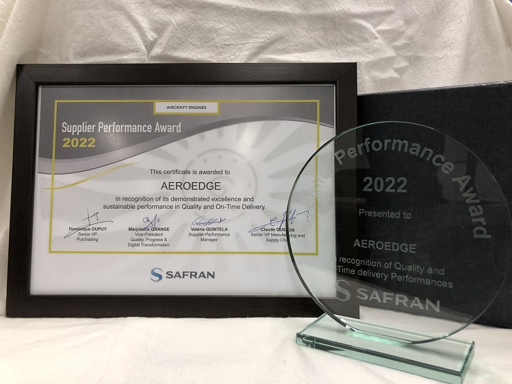 AeroEdge(エアロエッジ)が2022年度Safran Aircraft Engines社のサプライヤ パフォーマンス アワードを日本企業で唯一受賞