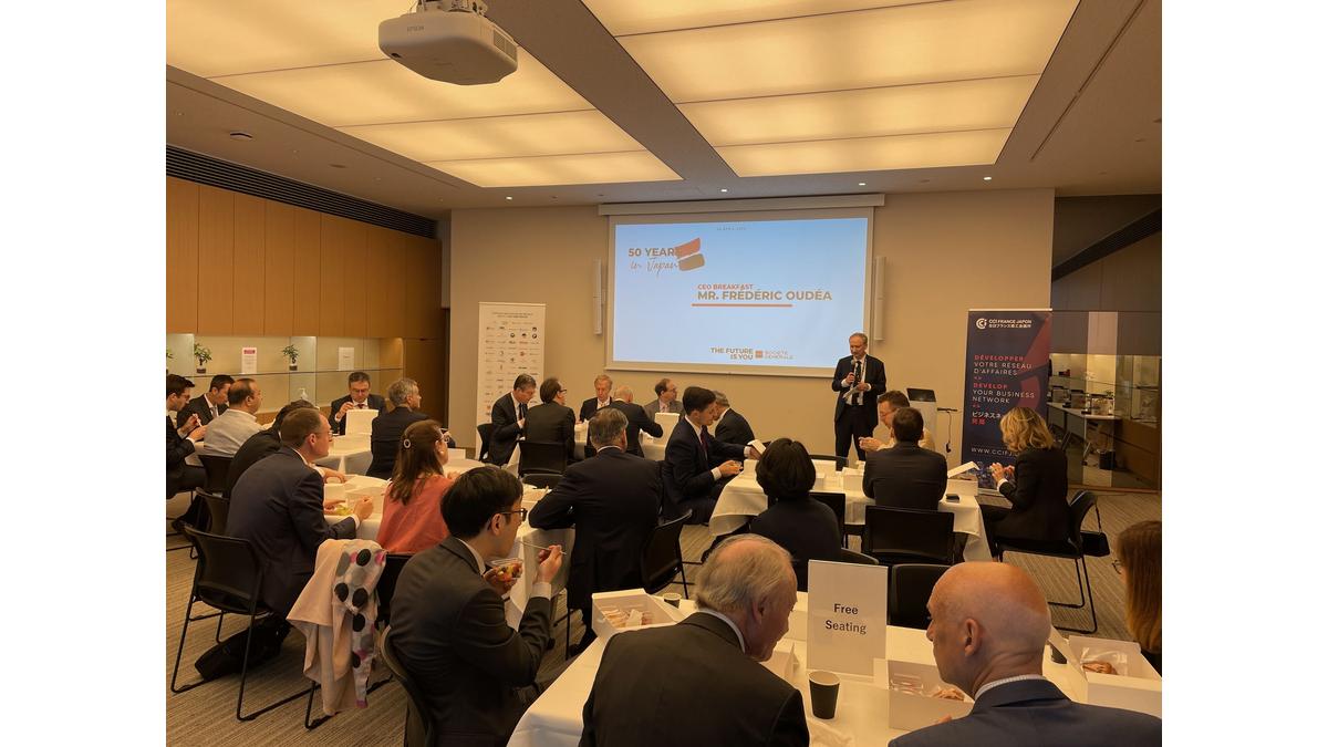 The French Chamber of Commerce and Industry in Japan held an exclusive CEO networking breakfast event for its Benefactor members with Mr. Frédéric Oudéa, the CEO of Societe Generale, on May 5, 2023. The event was attended by 29 C-level executives and General Managers from various Benefactor member companies of the Chamber.