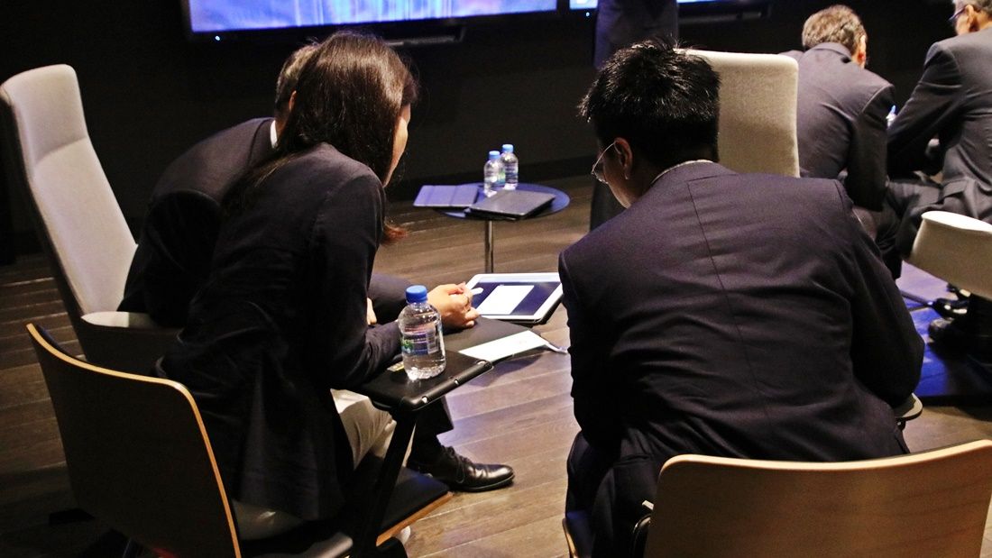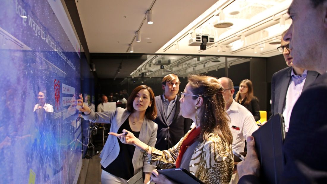 この会議はウェーブスペース内で行われ、参加者達がウェーブスペースの空間を体験できる素晴らしい機会となった。東京を含む世界中のEYによって提案がなされたこの協働空間は、デジタルソリューションの革新、共同創造、概念化を促進するために使われている。サイバーセキュリティを取り巻く現在のグローバルな傾向の概要の後に、参加者達は巨大なタッチスクリーンや会話型ディスプレイを使って、最先端の技術を誇るサイバーインテリジェンスのプラットフォームを試すことができ、実際的なグループワークに取り組むことができた。