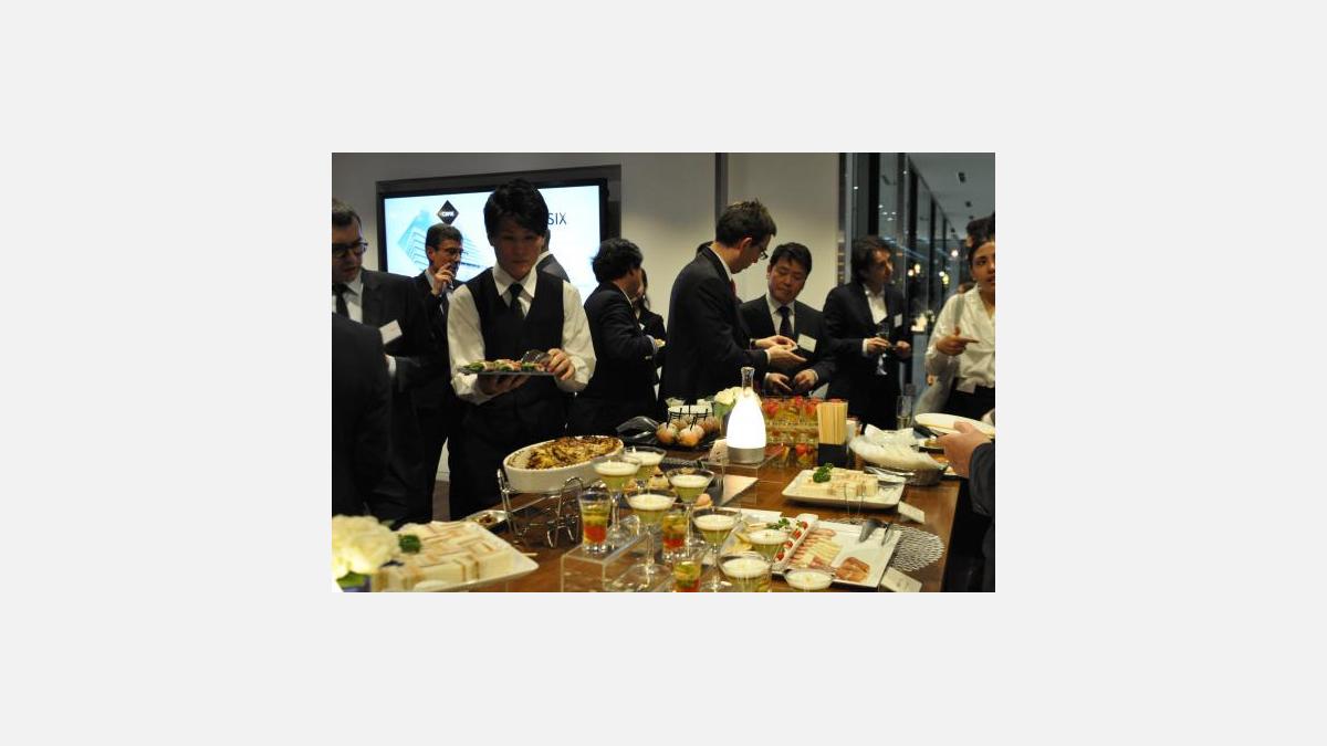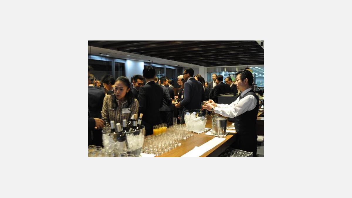 続いて、LVMHモエ・ヘネシー・ルイ・ヴィトン・ジャパンの代表取締役社長ノルベール・ルレ氏と、同グループのマニュエル・プラット氏が紹介された。ノルベール・ルレ氏は出席者の前で、「新たな始まり」と形容したこのダイナミックな商業施設が、銀座や東京だけではなく、日本中を再び活性化させ、活力をもたらす効果があると話した。参加者は、その後、豪華なフランス料理ビュッフェとシャンパーニュやワインを囲みながら交流を楽しみ、CBRE社のモダンなオフィスを説明を受けながら見学した。