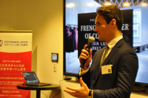 2017年4月に発刊した雑誌「フランス・ジャポン・エコー」149号が、「日本の高級ブランド市場」を特集したのを記念し、4月12日に東京・丸の内のCBREのオフィススペースで特別イベント「Ginza Six, Minus Eight」が開催された。「GINZA SIX, Minus Eight」は、4月12日に銀座にオ開業した新しい複合商業施設Ginza SIXの開業8日前を記念するイベントで、高級ブランド関係者ら約100名の招待客が集った。本イベントは、事業用不動産の世界最大手CBRE(シービーアールイー)の協力のもと行われ、CBREのアジアリテール部門ヘッドで、セレクティブ・ディストリビューション専門のアナリスト、ジョエル・ステフファン氏と、同じくCBREのアソシエイト・ディレクターのシャノン・ニシマツ氏が、高級品市場に関するプレゼンを行った。