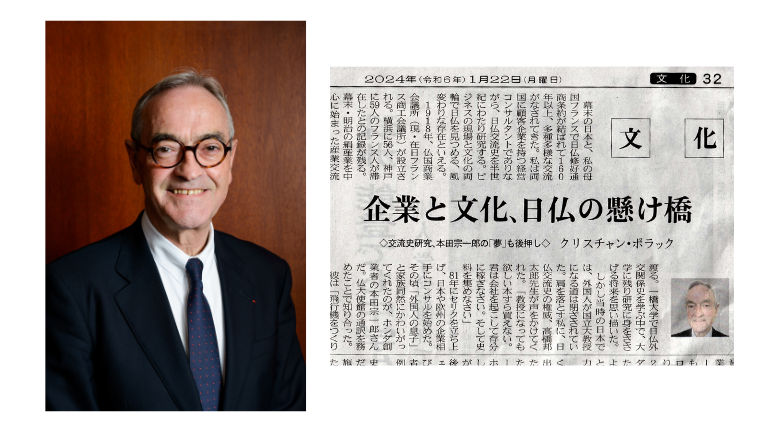 在日フランス商工会議所理事であるクリスチャン ポラック氏(株式会社セリク)の記事が2024年1月22日(月)に発行された日本経済新聞に掲載。企業と文化、日本の架け橋として活躍されているポラック氏の軌跡をご覧いただけます。 以下記事文となっております。…
