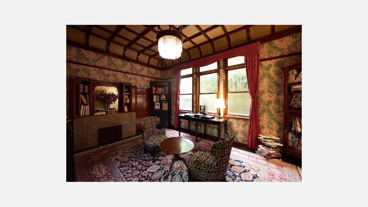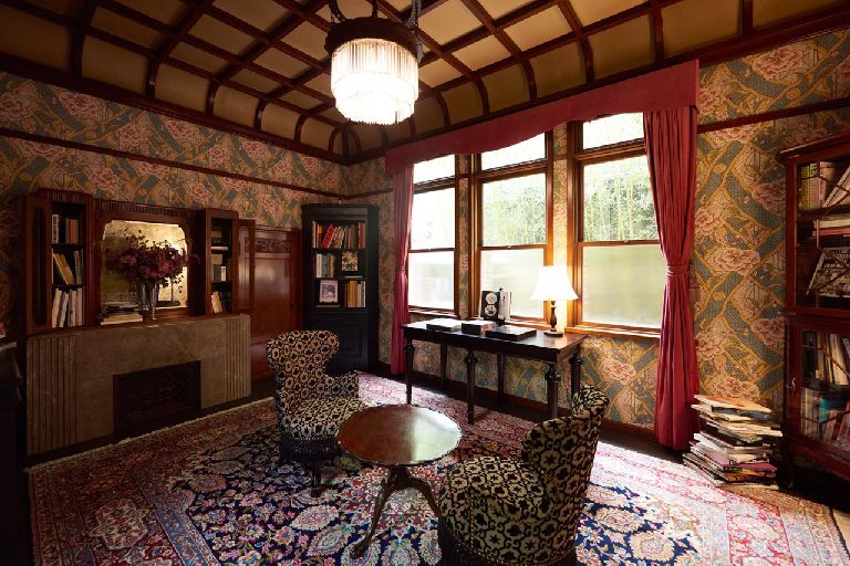La bibliothèque, recouverte de papier peint fleuri Gucci attire l’œil, de même que les chaises Gucci et les étagères abondamment décorées qui rappellent la Gucci Garden Bookstore de Florence, en Italie. D'autres détails, comme les panneaux en papier shoji portant le monogramme Gucci, sont beaucoup plus subtils. On y trouve également une réédition du célèbre sac Gucci de Lady Diana.