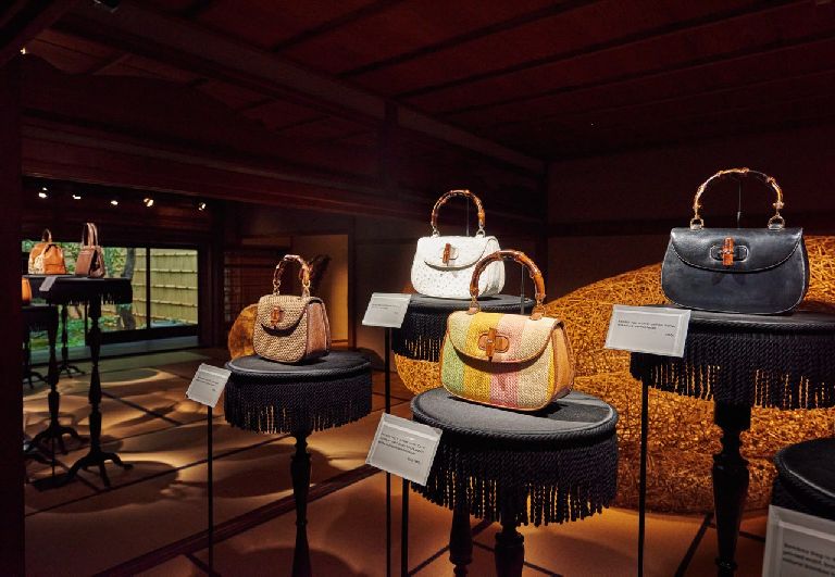 Comme Gucci s'inspire souvent du passé pour créer des pièces nouvelles et innovantes, Kyoto - vénérée pour ses traditions anciennes - était la destination idéale pour présenter la nouvelle collection. On y trouve notamment les sacs de la marque avec des poignées en bambou qui montrent le savoir-faire artisanal de la marque.