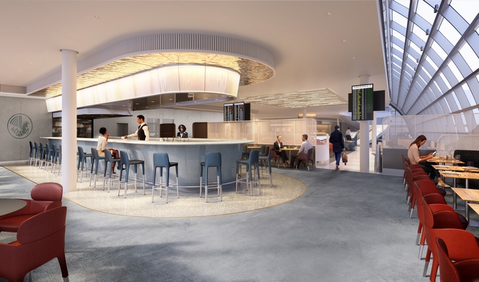 A l’étage, se trouvent des espaces de repos avec de larges méridiennes confortables et un éclairage tamisé. Un espace de soin Clarins propose aux clients de découvrir le nouveau concept Traveller Spa. Mise en beauté express ou coup d’éclat, des soins du visage sur-mesure de 20 minutes sont offerts pour se préparer sereinement au voyage. Enfin, un espace bien-être disposant de dix douches et d’un vestiaire est également disponible.