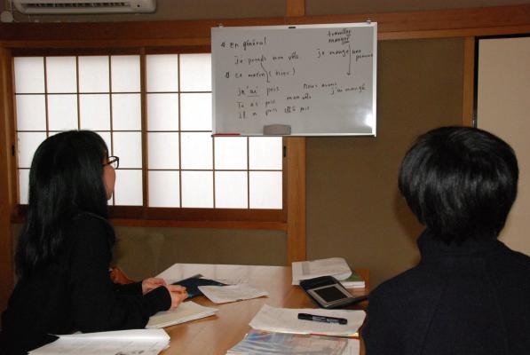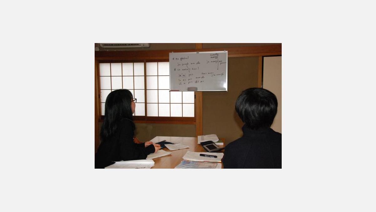 AJ-France est une école de langue un peu particulière. Fondée en 1999, cet établissement familial propose bien entendu des cours de français pour tous les niveaux, avec une spécialisation dans les leçons particulières et destinées aux enfants. Des cours personnalisés dans les locaux des entreprises qui souhaitent former du personnel pour la France sont possibles. Il offre également des activités annexes comme des cours de cuisines, des sorties thématiques (pique-niques) ou des présentations sur la culture française (vin, régions). AJ-France dispose enfin d’un service de traduction certifiée et d’interprétariat. Des entreprises locales en lien avec la France sollicitent souvent l’école pour traduire des documents administratifs, ou venir jouer les interprètes lors de prises de postes. « Nous jouons aussi un rôle d’intermédiaire auprès de nos clients pour identifier les bons contacts et faciliter la communication en France », explique Jean-Jacques Truchot, le Directeur. Avec 150 élèves et 9 permanents, dont 6 professeurs, AJ-France est la deuxième école la plus importante de Kyoto.