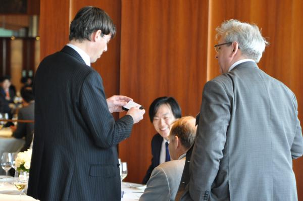 L’Assemblée Générale ordinaire s’est terminée par une intervention très attendue de M. Atsushi Horiba, Président de la société Horiba sur le sujet : "Horiba, entreprise de Kyoto : stratégie d’une expansion mondiale". M. Horiba a commencé son discours en indiquant apprécier énormément ses employés de nationalité française (15% d’une masse salariale de 7000 employés) pour leur créativité et car ils « savent attacher une grande importance à la qualité ».