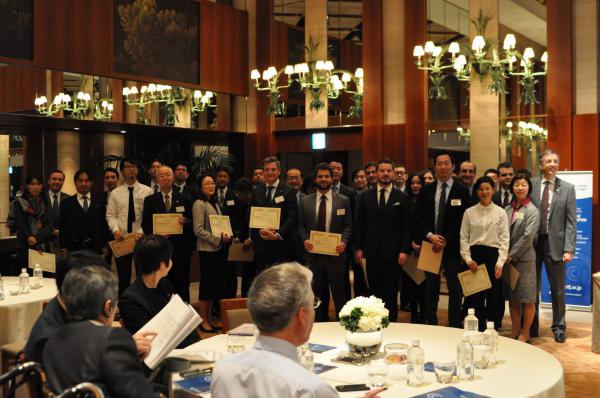 L’Assemblée Générale ordinaire 2017 de la CCI France Japon s’est tenue le mercredi 8 mars à l’hôtel Park Hyatt Tokyo. Elle a été l’occasion de remettre un certificat d’adhésion aux 84 nouvelles entreprises devenues membres en 2016, dont 6 membres individuels et 8 membres non-résidents. Cette année également, l’Assemblée Générale ordinaire a été organisée avec le soutien des sociétés Bolloré Logistics Japan, représentée par M. Arnaud Rastoul, et AGS Four Winds Japan, représentée par M. Ben Garcia.